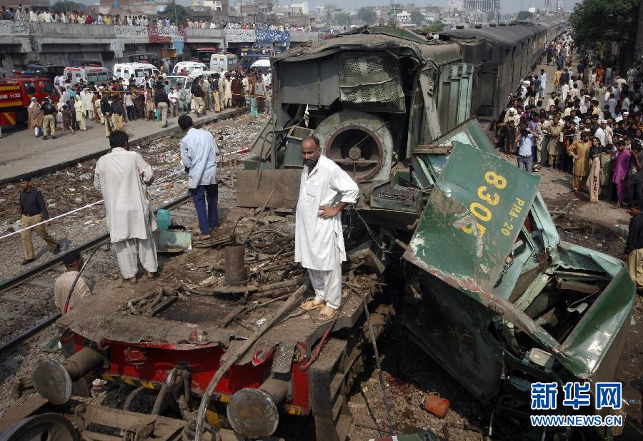 8月30日,在巴基斯坦的拉哈爾市郊,一名當地居民站在一輛火車的殘骸上。據巴基斯坦媒體30日報道,巴東部城市拉合爾當天上午發生一起火車相撞事故,造成至少5人死亡、25人受傷。 新華社/路透