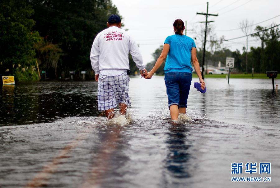 9月4日,在美國(guó)路易斯安那州克朗波因特,一對(duì)夫婦牽手趟過(guò)積水的街道。熱帶風(fēng)暴“李”4日清晨在路易斯安那州拉斐特市西南大約80公里處登陸,給該州東南部多地帶來(lái)超過(guò)50厘米降水,可能引發(fā)多地洪災(zāi)。另外,國(guó)家颶風(fēng)中心警告,受強(qiáng)降雨影響,新奧爾良市5日可能出現(xiàn)洪災(zāi)。新華社/法新