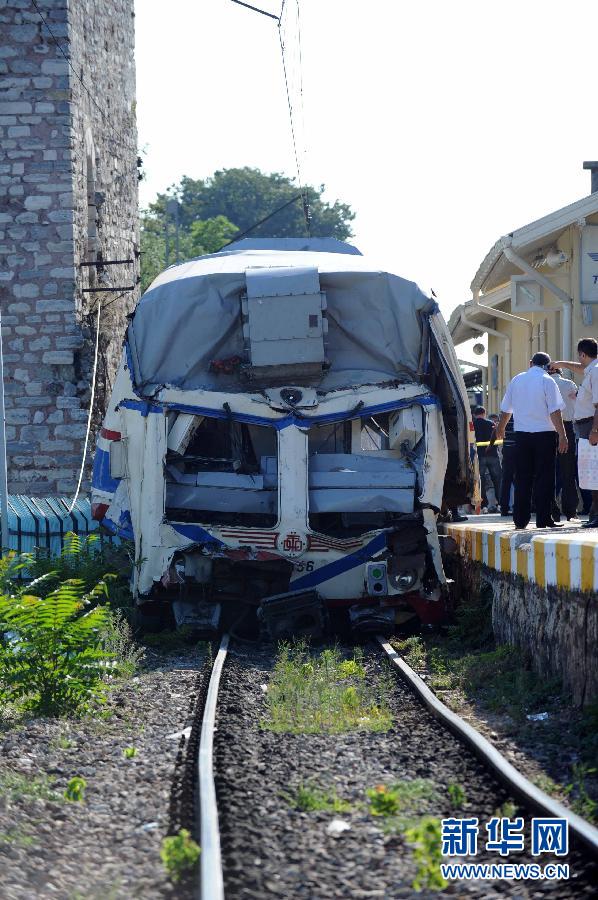 這是9月6日在土耳其伊斯坦布爾拍攝的火車(chē)相撞事故現(xiàn)場(chǎng)。 當(dāng)日,土耳其伊斯坦布爾的一輛客運(yùn)列車(chē)和一輛貨運(yùn)列車(chē)機(jī)車(chē)相撞,造成至少5人受傷。新華社記者馬研攝