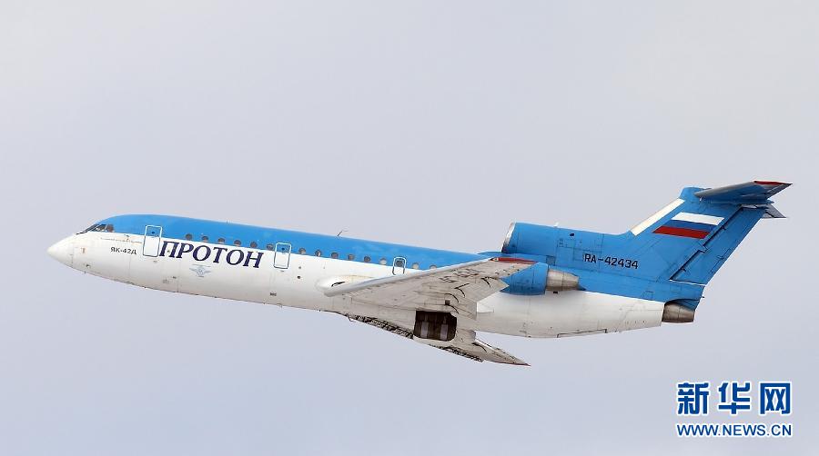 俄羅斯緊急情況部7日發(fā)布消息說(shuō),一架雅克-42型客機(jī)當(dāng)天在俄西部雅羅斯拉夫爾州墜毀,導(dǎo)致43人死亡。 這是雅克-42型客機(jī)的資料照片。新華社/法新