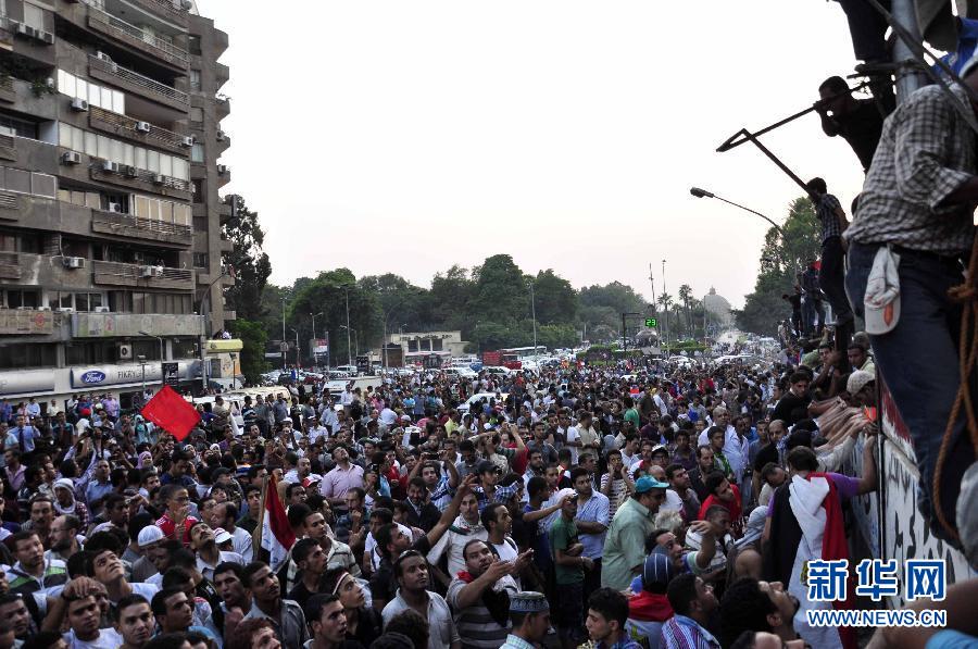 9月9日,示威者在開羅的以色列大使館前進行抗議示威活動。埃及抗議者9日深夜沖進以色列駐埃及使館所在的大樓,并從大樓頂部取下以色列國旗,抗議上個月5名埃及士兵被以軍打死。埃及內政部長宣布進入警戒狀態,取消警察的休息日。新華社發(艾依曼·穆薩 攝)