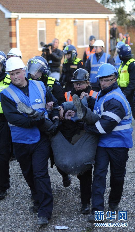 10月19日,在英國巴西爾登附近的戴爾農場,一名抗議者被移走。英國警方19日開始清理國內最大的流浪者非法居住區“戴爾農場”。部分居住者及支持者與警方發生沖突。戴爾農場位于首都倫敦以東大約50公里,住著大約400名流浪者。戴爾農場“非法”爭議自2001年開始,英國一家法院上周裁定予以清理。當地“居民”主要是愛爾蘭流浪者,他們稱清理行動針對弱勢群體,侵犯他們的權利。新華社/法新