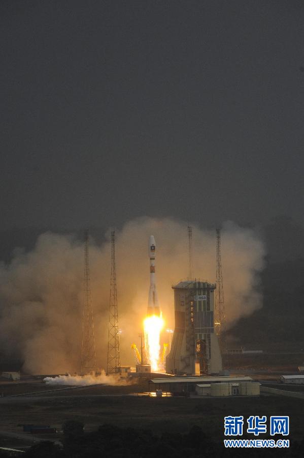 10月21日,俄羅斯“聯盟”運載火箭攜帶歐洲伽利略全球衛星導航系統首批兩顆衛星,從法屬圭亞那庫魯航天發射中心發射升空。 新華社/路透