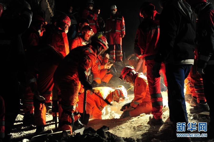 10月26日,在土耳其東部凡省的埃爾吉斯,救援人員在一棟倒塌的建筑物上工作。土耳其總理府26日晚發表聲明說,土耳其東部凡省23日發生的強烈地震造成的死亡人數已上升到481人。 新華社/法新