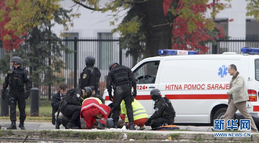 10月28日,在位于薩拉熱窩的美國駐波黑使館附近,一名槍手被警方制服。這名槍手28日下午在位于薩拉熱窩的美國駐波黑使館前開槍射擊,造成使館外數(shù)人受傷。 新華社/路透