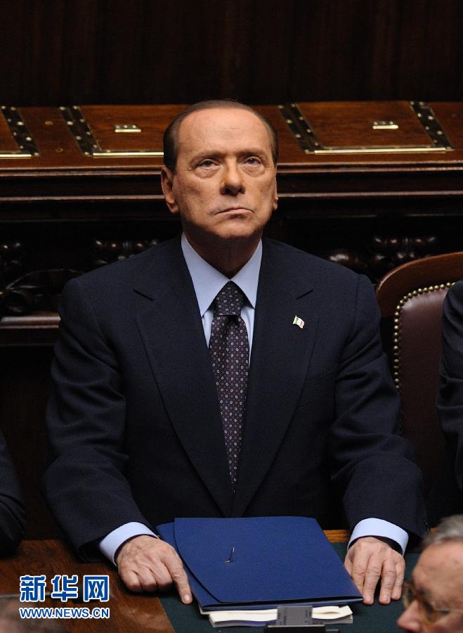11月8日,在意大利羅馬,意總理貝盧斯科尼在眾議院出席財政報告投票。貝盧斯科尼當天表示,他將在意大利議會通過一套旨在穩定國內財政狀況的法案之后宣布辭職。 新華社記者王慶欽攝