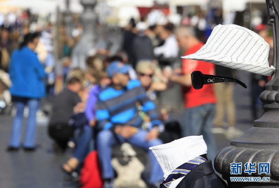 這是11月10日在意大利羅馬拍攝的一件由街頭藝人創作的“隱形人”街頭藝術作品。在市場恐慌情緒推動下,意大利10年期國債收益率9日突破7%大關,意大利破產風險急劇上升,市場普遍擔憂意大利可能步希臘后塵。新華社/路透
