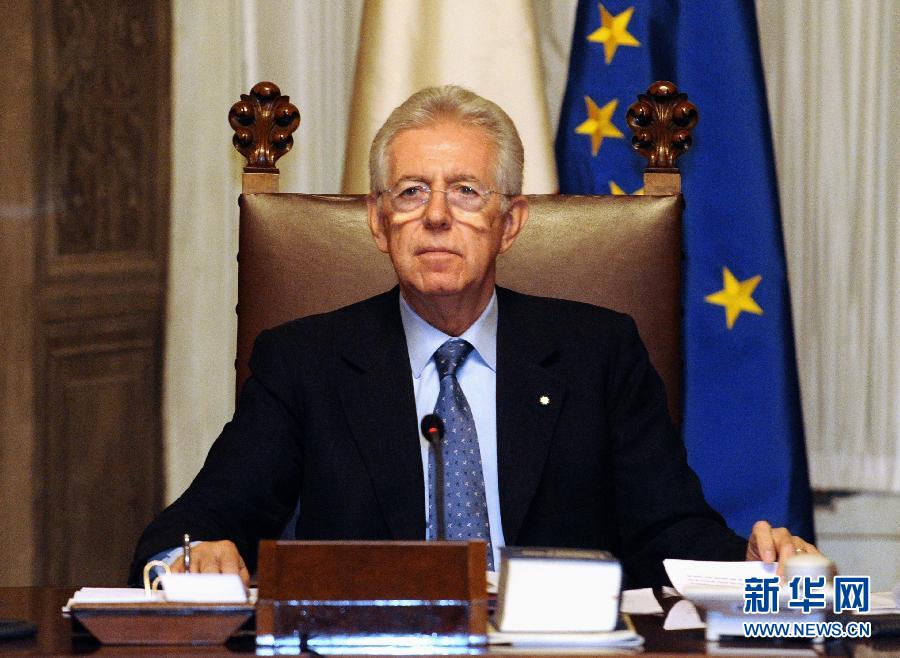 11月16日,在意大利羅馬總理府,意大利過渡政府總理馬里奧·蒙蒂首次主持內閣會議。 當天,蒙蒂過渡政府在意大利總統府正式宣誓就職。新華社發(阿爾貝托·林格里亞攝)