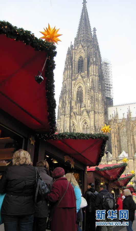 11月24日,人們在德國科隆大教堂下的圣誕市場游覽購物。 隨著圣誕節日益臨近,德國各地傳統的圣誕市場陸續開始營業。 新華社記者馬寧攝