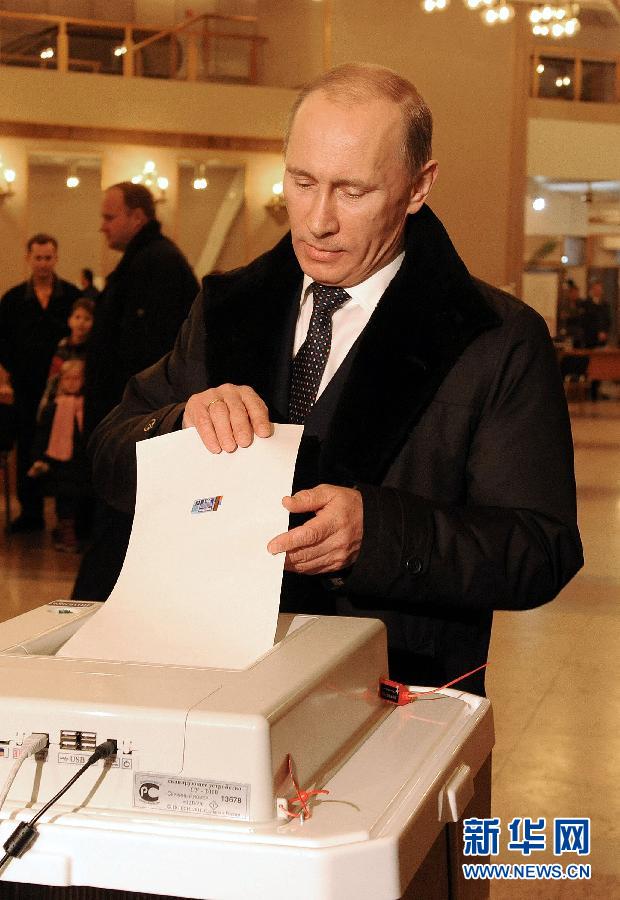 12月4日,在俄羅斯首都莫斯科,俄總理普京在投票點參加投票。