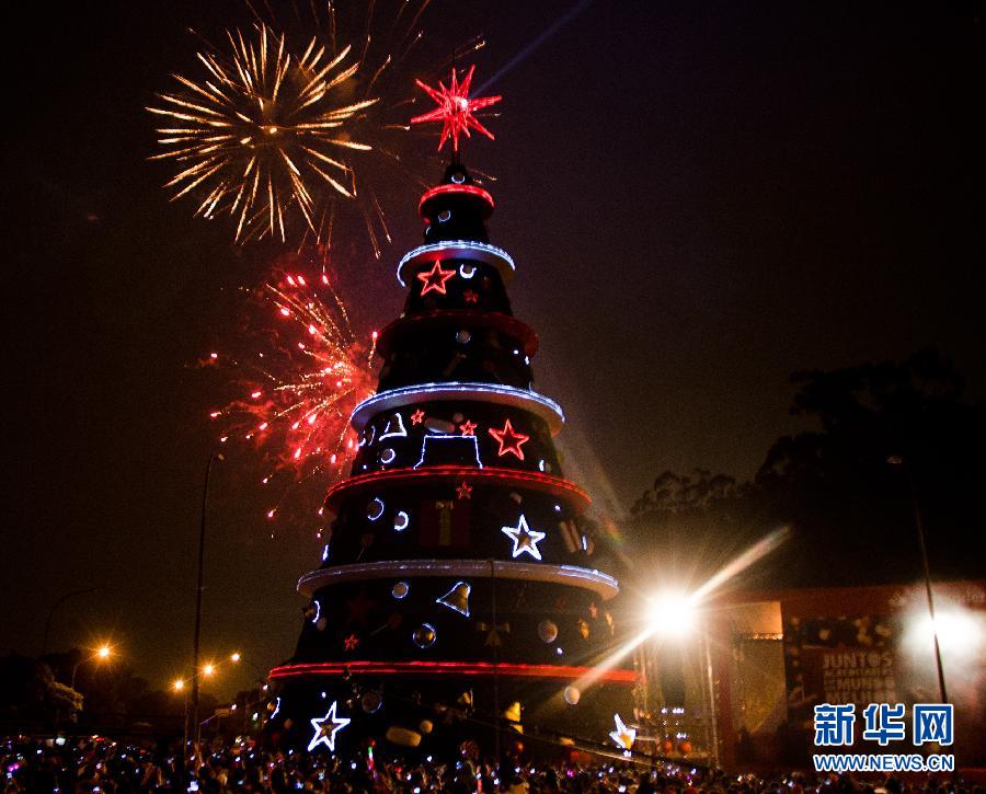 12月4日,人們在巴西圣保羅觀看巨型圣誕樹揭幕儀式。當日,一棵58米高的巨型圣誕樹亮相巴西圣保羅,500個燈泡和12000米長的LED燈線讓圣誕樹熠熠生輝。 新華社/圣保羅通訊社