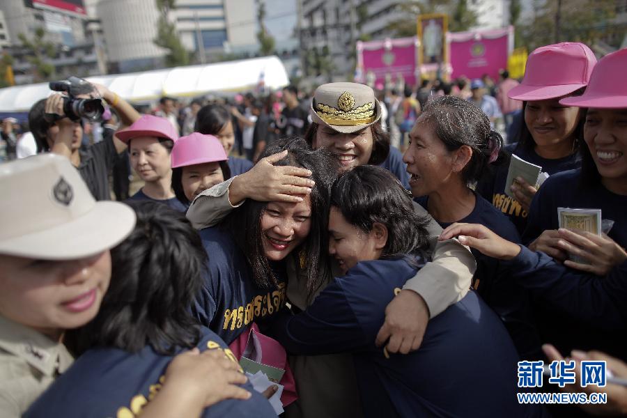 12月8日,在泰國首都曼谷的邦廣中央監(jiān)獄,被赦女囚犯與獄警告別。