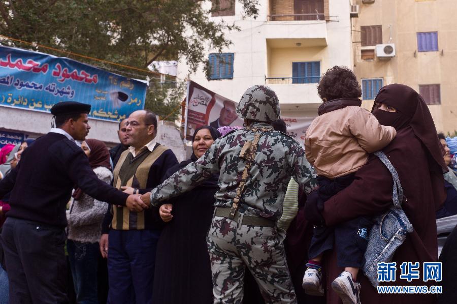12月14日,在埃及開羅西部吉薩省的投票站外,軍警在維持秩序。埃及人民議會(議會下院)選舉第二輪投票當(dāng)日在吉薩和蘇伊士等9個省開始舉行。 新華社記者李木子攝