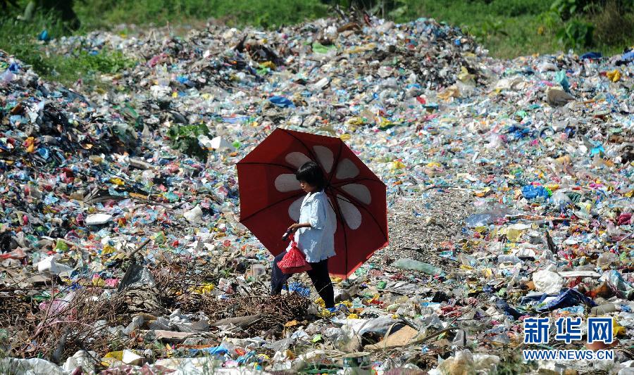 12月21日,在菲律賓卡加延-德奧羅,一名女孩走過一處垃圾堆。