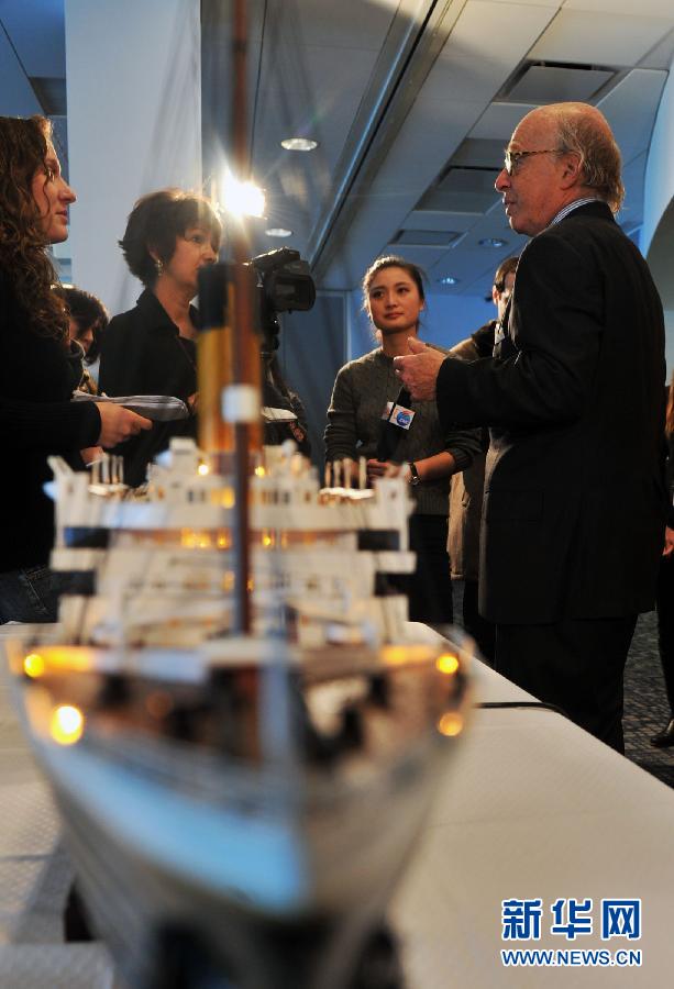 1月5日,紐約格恩西拍賣行負(fù)責(zé)人向媒體介紹即將進(jìn)行的“泰坦尼克”號(hào)被打撈遺物拍賣情況。美國(guó)紐約格恩西拍賣行將在2012年4月1日一次性拍賣“泰坦尼克”號(hào)巨輪的5500多件遺物,包括船上配件、精美瓷器、船殼碎片等。根據(jù)2007年的估算,其總價(jià)值高達(dá)1.89億美元(約合12億元人民幣)。拍賣結(jié)果將在4月15日公布,那一天正是“泰坦尼克”號(hào)100年前處女航時(shí)撞上冰山而沉沒的日子。新華社記者王雷攝