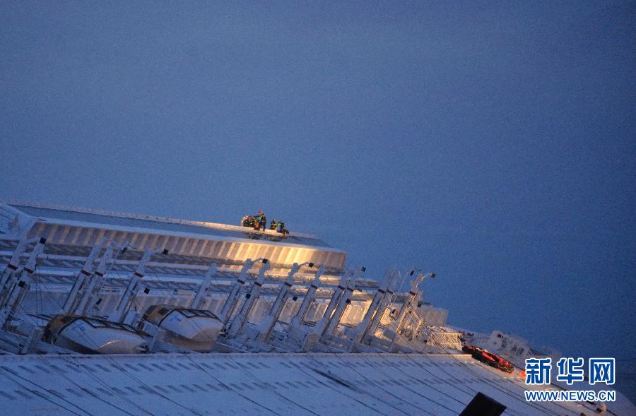 1月19日,在意大利吉利奧島附近,消防員登上觸礁擱淺的“科斯塔·康科迪亞”號(hào)游輪開展搜救。當(dāng)天,“科斯塔·康科迪亞”號(hào)搜救工作在因發(fā)現(xiàn)游輪船身出現(xiàn)移動(dòng)而一度暫停后重新全面展開。救援人員繼續(xù)找尋失蹤人員。本月13日晚,載有約4200人的“科斯塔·康科迪亞”號(hào)在環(huán)繞地中海航行時(shí)在吉利奧島附近海域觸礁,已造成11人死亡。新華社記者王慶欽攝