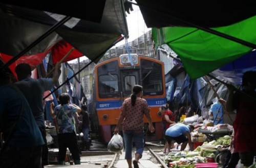 泰國一市場被稱全球最危險集市 火車1天穿行8次(網頁截圖)