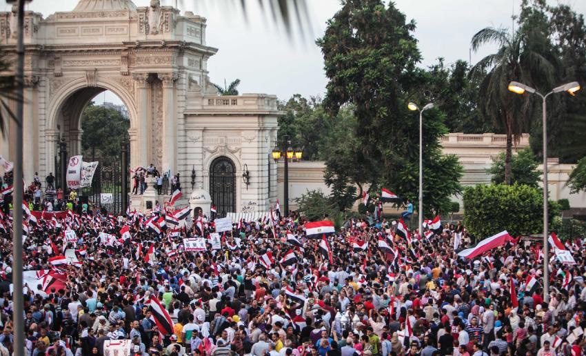 7月2日,大批反穆爾西示威人群聚集在埃及開羅總統府前。埃及總統穆爾西2日通過其社交網站官方賬戶表示,自己將堅決捍衛憲法賦予的職權,要求軍方撤銷一天前為埃及各派設定的48小時最后期限。 新華社記者李木子攝