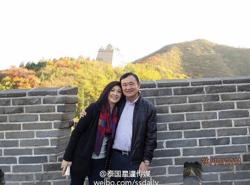 據(jù)“泰國(guó)星暹傳媒”10月26日?qǐng)?bào)道,泰國(guó)前總理英拉攜兒子和哥哥他信昨天到達(dá)北京,開始他們?cè)诰┏堑穆贸蹋⒂^了八達(dá)嶺長(zhǎng)城。從照片上看,英拉的親民的氣質(zhì)吸引了不少游客,連盤踞北京多日的霧霾也跑了。