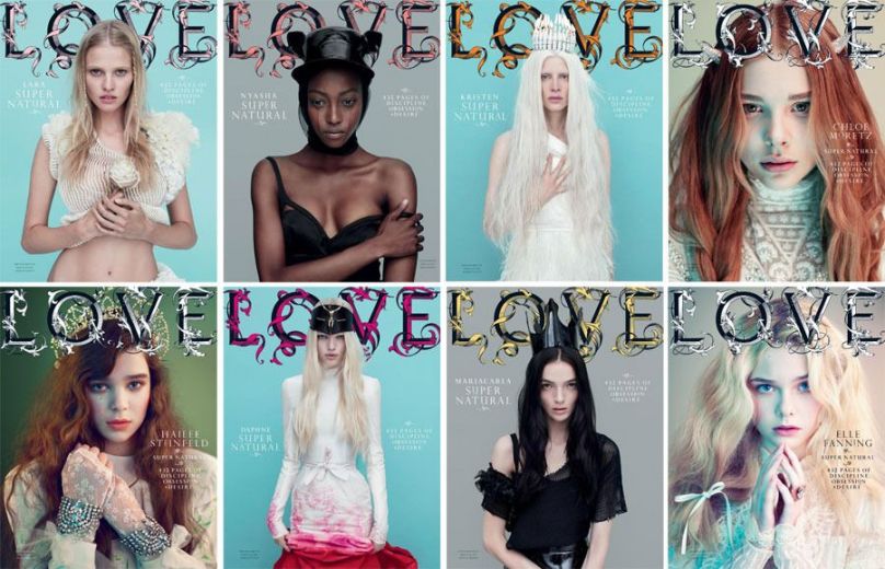 著名時尚雜志《LOVE》的第六期,以8個封面之巨,展現Kristen McMenamy, Daphne Groeneveld, NyashaMatonhodze, LaraStone, Mariacarla Boscono,Hailee Steinfeld, Elle Fanning以及Chloe Moretz等超模垂淚的模樣。