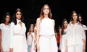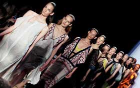 9月9日,在美國紐約舉行的梅賽德斯-奔馳紐約2012春夏時裝周上,一名模特展示REBECCA TAYLOR品牌的服裝。梅賽德斯-奔馳紐約2012春夏時裝周當天進入第二天。 新華社記者伍婧丹攝