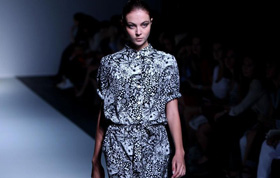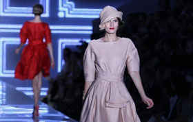 10月5日,在法國巴黎時裝周上,模特展示路易威登2012年春夏新品。新華社記者 高靜 攝