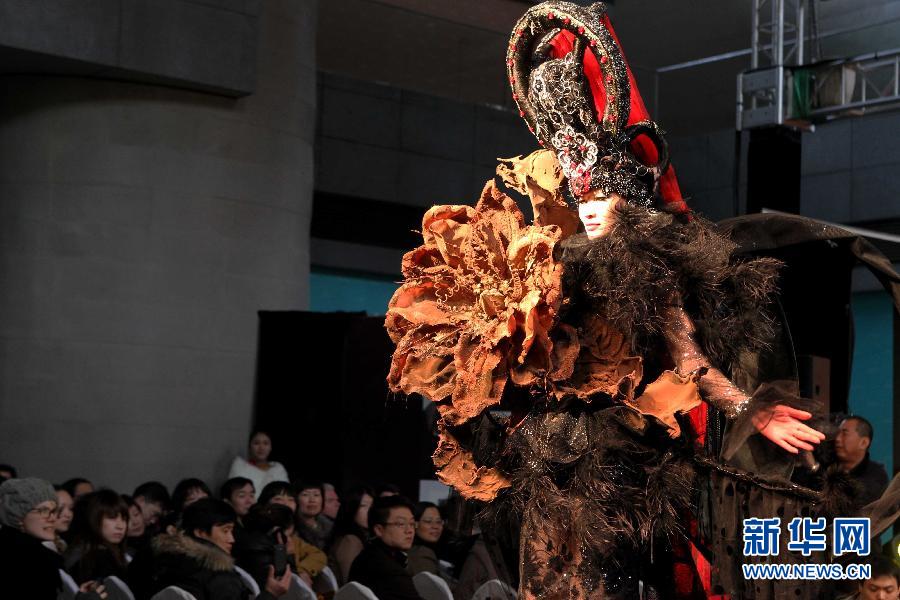 12月15日,模特在展示由臺灣著名時裝設計師康延齡以金庸作品為靈感設計的手持“龍女花”的巧克力時尚禮服。 當日,上海世界巧克力夢公園開幕式上演了一場“巧克力時裝秀”。來自海峽兩岸的新銳時裝設計師們,將中國傳統及創意時尚的元素,與巧克力材料和工藝相結合,打造了頗具視覺沖擊力的巧克力時裝秀。 新華社記者劉穎攝