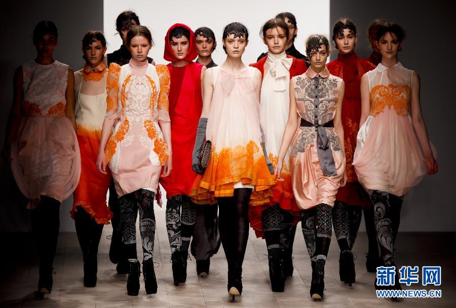 2月17日,模特在倫敦時裝周上展示土耳其設計師阿克蘇的作品。2012年倫敦秋冬時裝周于當日開幕。新華社發(唐詩攝)