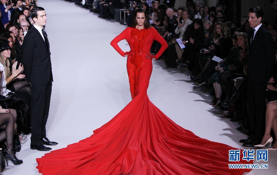 1月24日,在位于法國巴黎的城市建筑與古跡博物館,模特在巴黎高級定制時裝周上展示STEPHANE ROLLAND品牌的2012/2013春夏新品。 新華社記者高靜攝