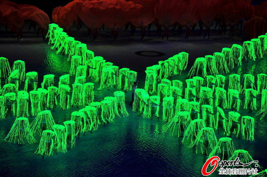 2010年11月10日,2010年廣州亞運(yùn)會(huì)開幕式帶妝合排,圖為精彩瞬間。