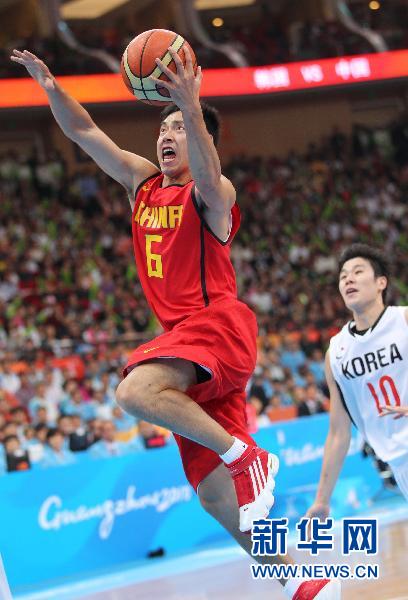 當日,第16屆亞運會男子籃球決賽在廣州舉行,中國隊以77比71戰勝韓國隊,奪得冠軍。新華社記者孟永民攝