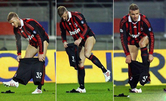 2010年1月11日凌晨,意甲第19輪迎來焦點戰役,AC米蘭客場3比0擊敗尤文圖斯。這也是貝克漢姆回歸米蘭的第二場比賽,除了和隊友一起奉獻了一場勝利,贏球后異常興奮的他還脫去了上衣,并在眾目睽睽之下換褲子,令人大跌眼鏡。