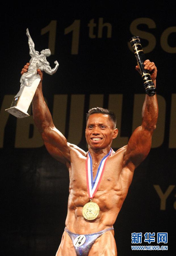 當日,緬甸健美協會主辦的東南亞男子健美比賽在仰光會展中心舉行。 新華社發(吳昂攝)