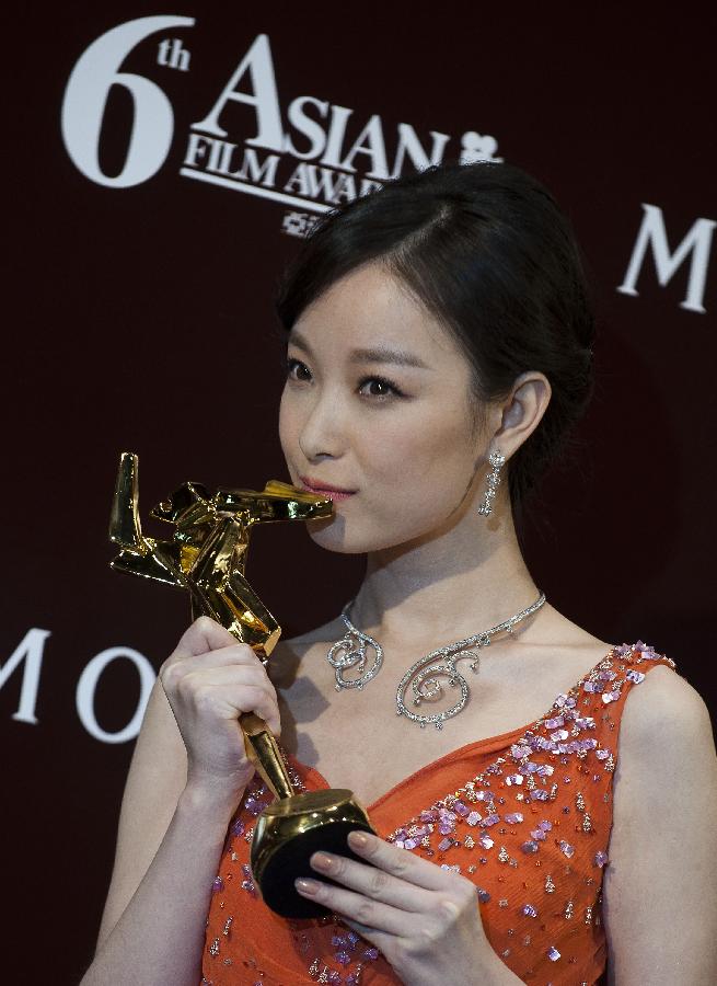 3月19日, 倪妮以電影《金陵十三釵》奪得最佳新演員獎(jiǎng)。當(dāng)日,第六屆亞洲電影大獎(jiǎng)?lì)C獎(jiǎng)禮在香港舉行。 新華社記者呂小煒攝