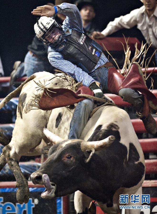 3月31日,澳大利亞選手拉克倫·理查德森在騎牛比賽中。當(dāng)日,2012年度職業(yè)騎牛比賽蒙特利爾邀請(qǐng)賽在加拿大魁北克省蒙特利爾市貝爾中心舉行。來自加拿大、美國(guó)、澳大利亞等30名世界一流騎牛高手參加了比賽。最終,澳大利亞選手拉克倫·理查德森獲得第一名。此次蒙特利爾邀請(qǐng)賽是2012年度職業(yè)騎牛比賽加拿大系列賽的一站,為今秋在美國(guó)舉行的世界騎牛錦標(biāo)賽選拔人才。新華社發(fā)(宋偉仁攝)