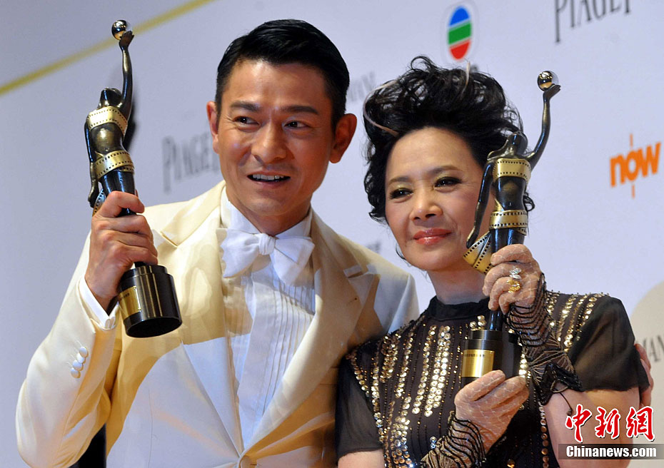 4月15日晚,“第三十一屆香港電影金像獎”頒獎典禮在香港文化中心大劇院隆重舉行,影星劉德華、葉德嫻憑演出電影《桃姐》奪得最佳男女主角獎項。中新社發 鄧慶樂 攝