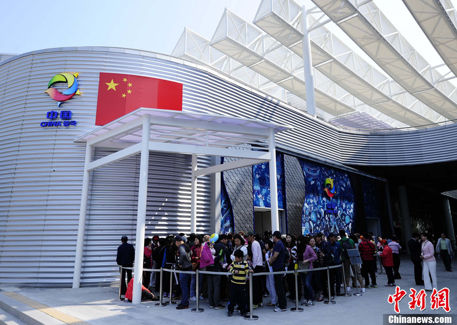 5月12日,不少觀眾在2012韓國麗水世博會中國館外排隊等候參觀。中新社發 侯宇 攝