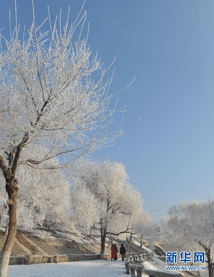 12月1日,游人在吉林市江濱公園欣賞霧凇景觀。連日來,吉林省吉林市松花江沿岸接連出現(xiàn)霧凇景觀。 新華社記者 林宏 攝