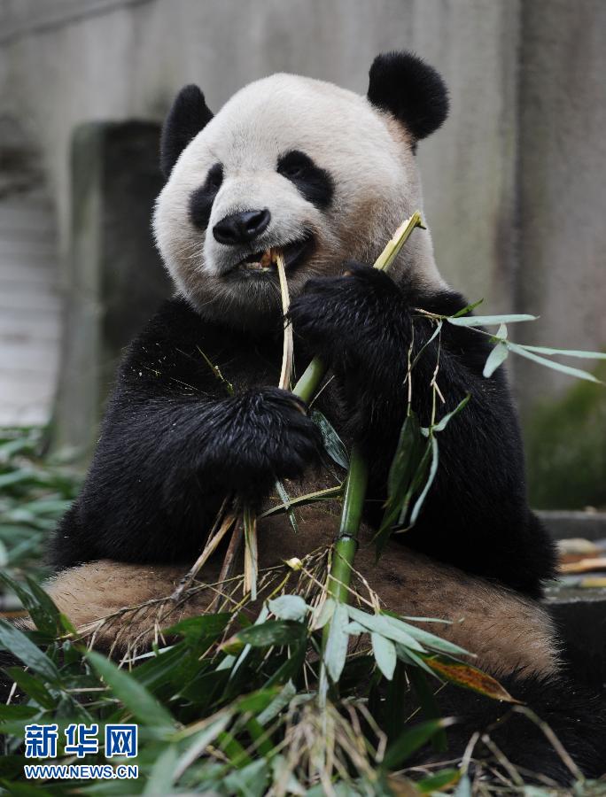 12月3日,臨行前,大熊貓“陽光”在大快朵頤。當日,大熊貓“甜甜”“陽光”從中國保護大熊貓研究中心雅安碧峰峽基地啟程前往英國愛丁堡。根據年初中英兩國簽署的大熊貓科研合作協議,這一對象征兩國友誼的大熊貓將被送往英國進行為期10年的交流。新華社記者 李橋橋 攝