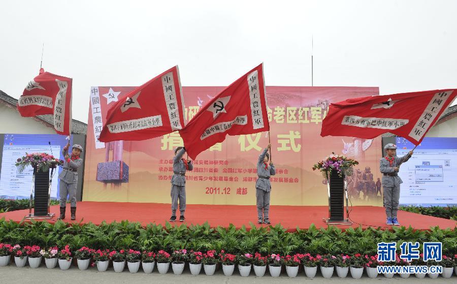 當(dāng)日,中國(guó)延安精神研究會(huì)、全國(guó)紅軍小學(xué)建設(shè)工程理事會(huì)在四川捐款100萬(wàn)元用于建設(shè)4所紅軍小學(xué)。到目前為止,四川共建設(shè)18所紅軍小學(xué),成為全國(guó)建設(shè)紅軍小學(xué)最多的省份。新華社發(fā)(熊偉攝)