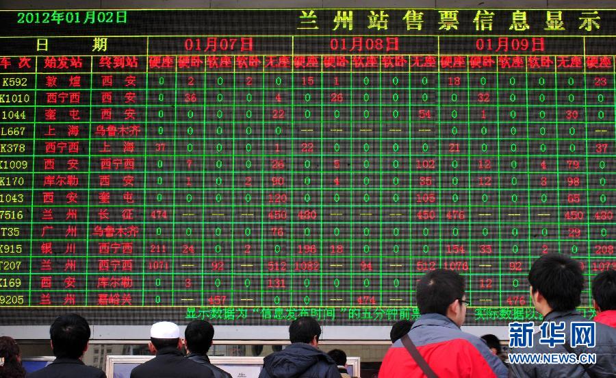 1月2日,旅客在蘭州火車站查詢售票信息。元旦期間,蘭州火車站迎來購票高峰,購票者以學生為主,購票人數較平時增加2至3倍。據了解,元旦假日期間,蘭州火車站預計發送旅客11萬人次。新華社記者 張錳 攝