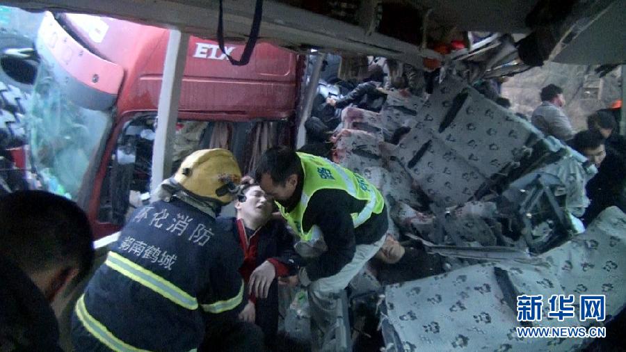 這起事故還造成9人重傷,32人輕傷。事故系一輛自西往東行駛的重型掛車(豫PY2010)失控沖過中間護欄,致使從東往西行駛的一輛大客車(冀A61231)撞上掛車。目前,受傷人員已送往醫院搶救。