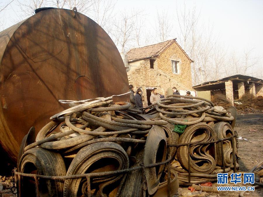 當(dāng)日,河南省項(xiàng)城市工商部門根據(jù)群眾舉報(bào),在項(xiàng)城市南頓鎮(zhèn)查處一家涉嫌用廢輪胎非法提煉燃料油的黑窩點(diǎn)。這種小煉油廠不但會(huì)產(chǎn)生大量有害氣體和垃圾,污染空氣和水源,而且易引發(fā)火災(zāi),已被國(guó)家明令禁止。目前,河南項(xiàng)城市工商部門已責(zé)令關(guān)停這家地下煉油廠,并開(kāi)始調(diào)查取證。 新華社發(fā)