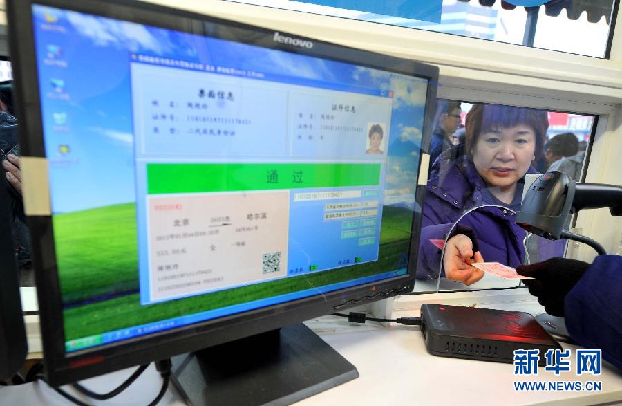 1月8日,一位旅客在北京站驗證驗票。當(dāng)日,北京站、北京西站開始實行實名制驗證驗票進(jìn)站乘車。早晨8點,記者在北京站和北京西站看到,等候進(jìn)站旅客在驗票亭前有序排隊,鐵路工作人員不斷提示旅客提前準(zhǔn)備好車票和證件。據(jù)了解,鐵路部門在北京站站前廣場設(shè)置38個實名制進(jìn)站驗證驗票口,在北京西站南北廣場設(shè)置110個實名制驗證驗票口。在驗證驗票時,工作人員將旅客的二代身份證放到識別器上,旅客的身份證信息就顯示在電腦屏幕右上方,然后驗票員用掃描儀掃描車票的二維碼,票面信息顯示在電腦屏幕左上方,同時車票顯示在電腦屏幕左下方。這樣,車票和身份證等信息就一覽無余,如果符合規(guī)定,電腦就會顯示“通過”,整個過程最快只需幾秒鐘。但使用一代身份證等其他證件購票的旅客,驗票速度就相對較慢,因為工作人員需要人工核對票面和證件信息。為盡量降低對旅客的影響,北京站和北京西站實名制驗證驗票口還設(shè)有愛心通道、應(yīng)急通道,重點解決“老弱病殘孕”等特殊旅客的需求。此外,也設(shè)有公安制證窗口,為旅客補辦臨時身份證明;以及特殊情況處置區(qū)域,對票證不符、設(shè)備無法識別的車票等特殊情況進(jìn)行處理。新華社記者 公磊攝
