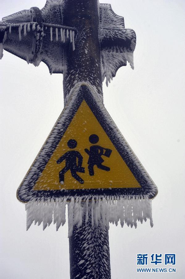 1月23日在京港澳高速粵北南嶺韶關(guān)樂昌段沿途拍攝的冰霧景觀。受強(qiáng)冷空氣影響,廣東正遭遇寒冷的春節(jié)。廣東公路出省“咽喉要道”京港澳高速部分路段溫度已經(jīng)降至零下,粵北韶關(guān)樂昌段沿途能見度10米左右,霧鎖南嶺,道路結(jié)冰,行車緩慢。新華社發(fā)(李作描 攝)