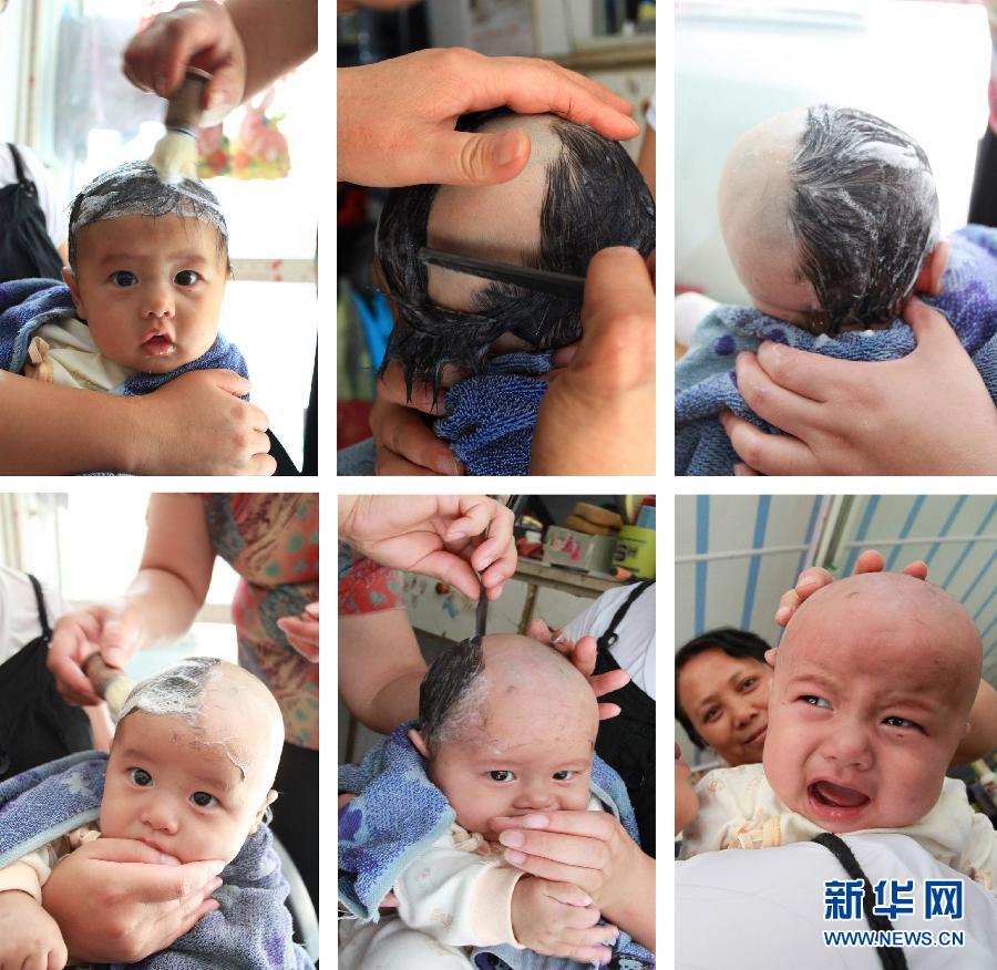 2月23日拍攝的貴州安順一位小朋友“剃龍頭”的全過(guò)程。(拼版照片)當(dāng)日是農(nóng)歷二月初二,民間有“二月二,龍?zhí)ь^”的說(shuō)法。為討個(gè)好彩頭,許多家長(zhǎng)帶著孩子到理發(fā)店理發(fā)。新華社發(fā)(盧維 攝)