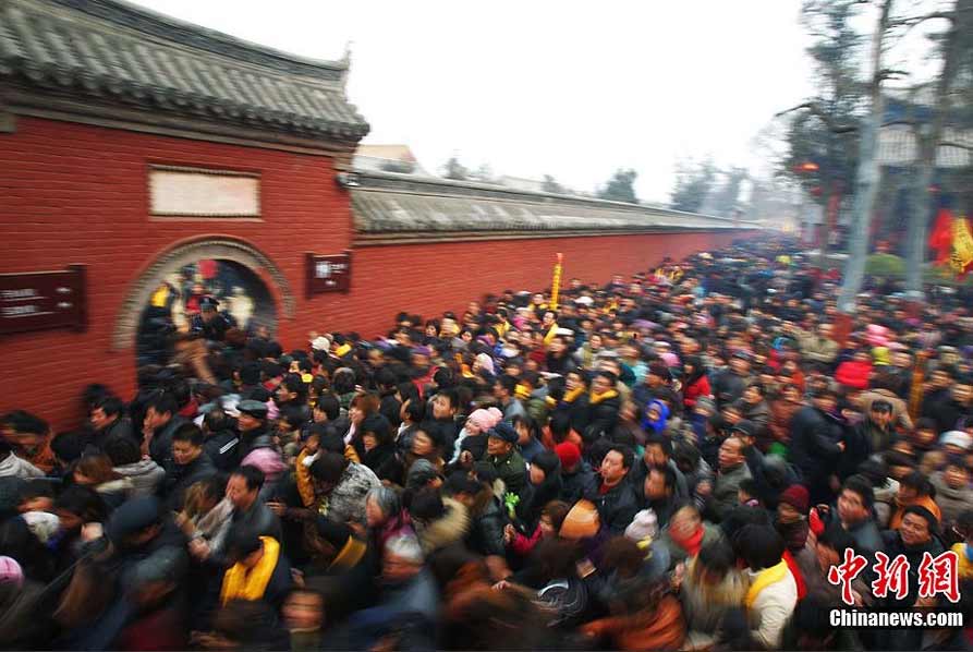 2月23日,河南淮陽太昊陵,公祭中華人文始祖伏羲氏大典在此舉行,據(jù)當?shù)毓俜浇y(tǒng)計,當日香客流量近50萬人次。據(jù)悉,淮陽相傳是中華人文始祖太昊伏羲氏的建都和長眠之地,2008年,淮陽太昊陵廟會以其參會人數(shù)一天82萬人次被世界吉尼斯總部授予“全球單日參會人數(shù)最多的古廟會”。中新社發(fā)
