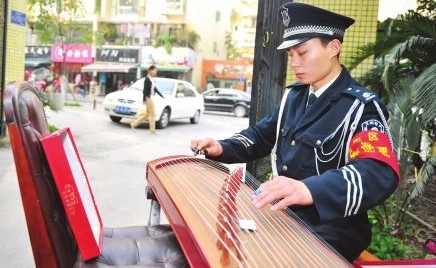 成都“文藝保安哥”在小區門口彈古箏的照片被上傳到微博后,引來數萬網友的圍觀,其中絕大多數人力挺他。