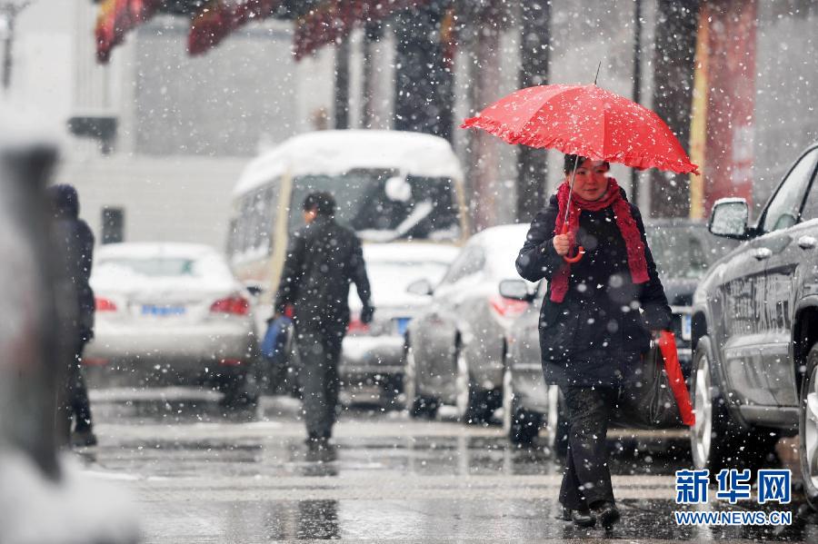 4月11日,市民冒雪行走在銀川街頭。 當日,寧夏銀川等地出現四月飛雪的天氣。寧夏氣象臺發布暴雪橙色預警。目前,銀川市、石嘴山東部、吳忠北部出現降雪,預計未來12小時內降雪將持續并增強,降雪量將達5毫米以上。降雪的同時還伴隨明顯的氣溫下降,氣象部門提醒公眾注意防寒保暖。新華社記者 彭昭之 攝