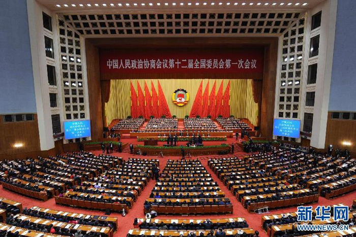 3月3日,中國人民政治協商會議第十二屆全國委員會第一次會議在北京人民大會堂開幕。 新華社記者王曄攝